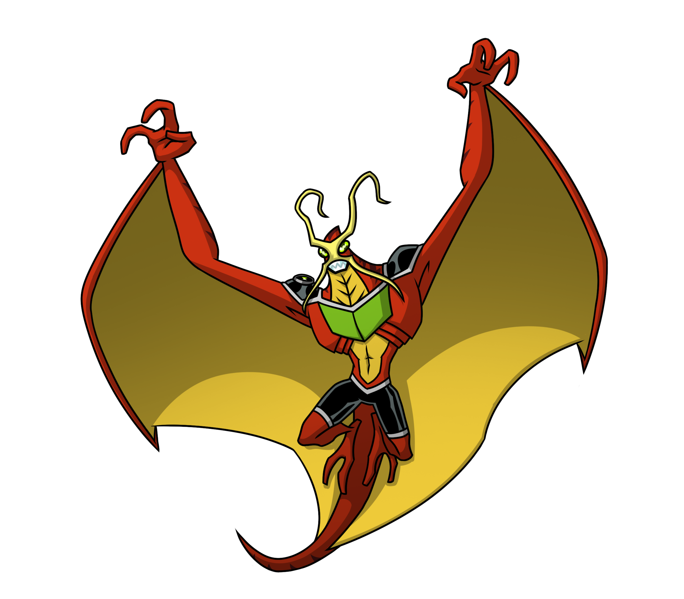 | An Aerophibian from the planet Aeropela. Jetray can fire neuroshock beams from his eyes and tail, and fly fast enough to enter hyperspace. | ||