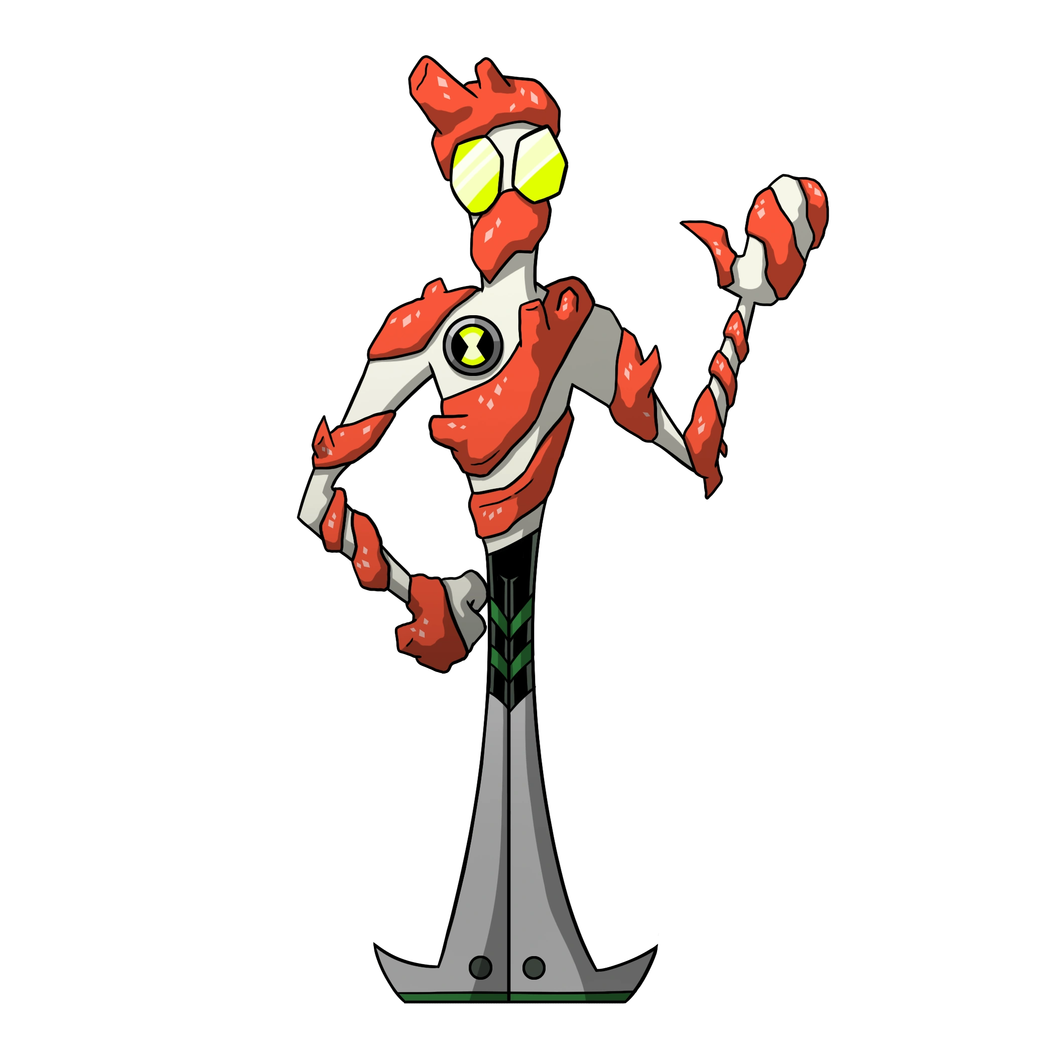 The Omnitrix symbol is located on his chest.