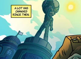 One day a massive rock made of Ecto-Ranium was heading to earth and going to destroy it and by proxy the Ghost Zone. Vlad uses this to gain full control of the world but he failed and was left in the vastness of space. Danny gather all the ghost he could find to use their phasing ability on the entire planet allowing the Disasteroid to fly right through the earth. The world celebrated and honor Danny by putting statue of him across the entire world.[3][2]